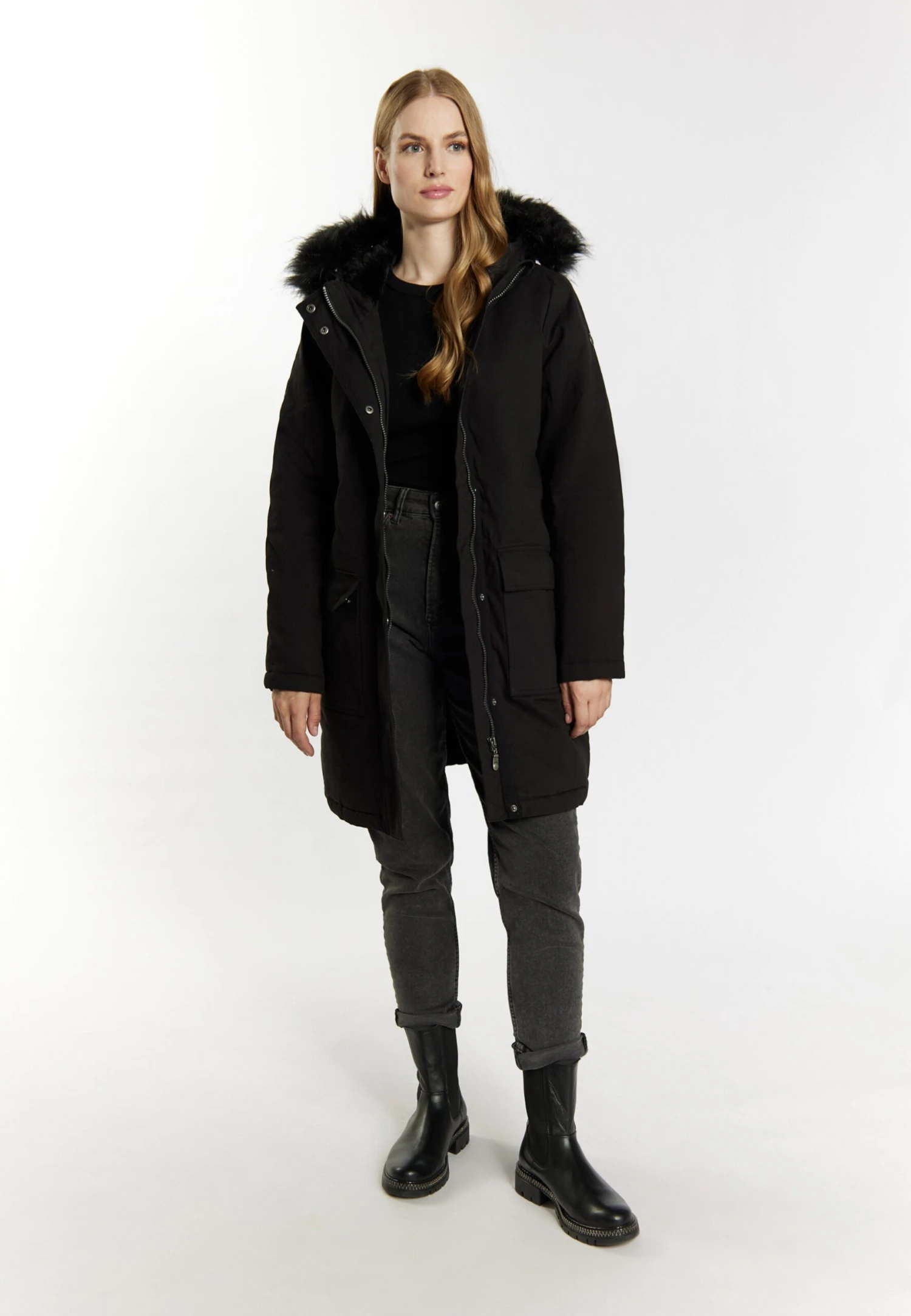 DreiMaster Vintage Parkas Winterparka Dames Zwart