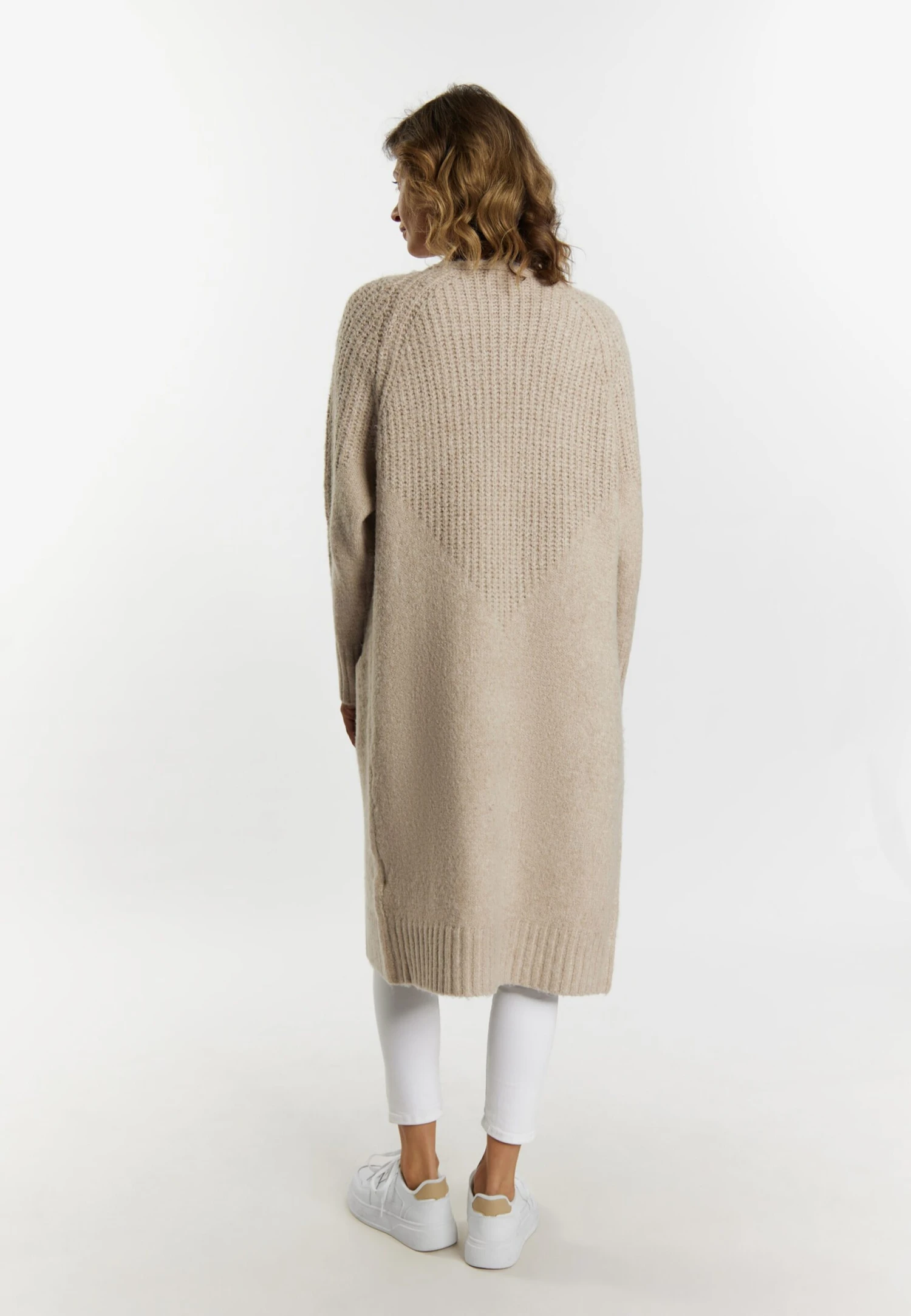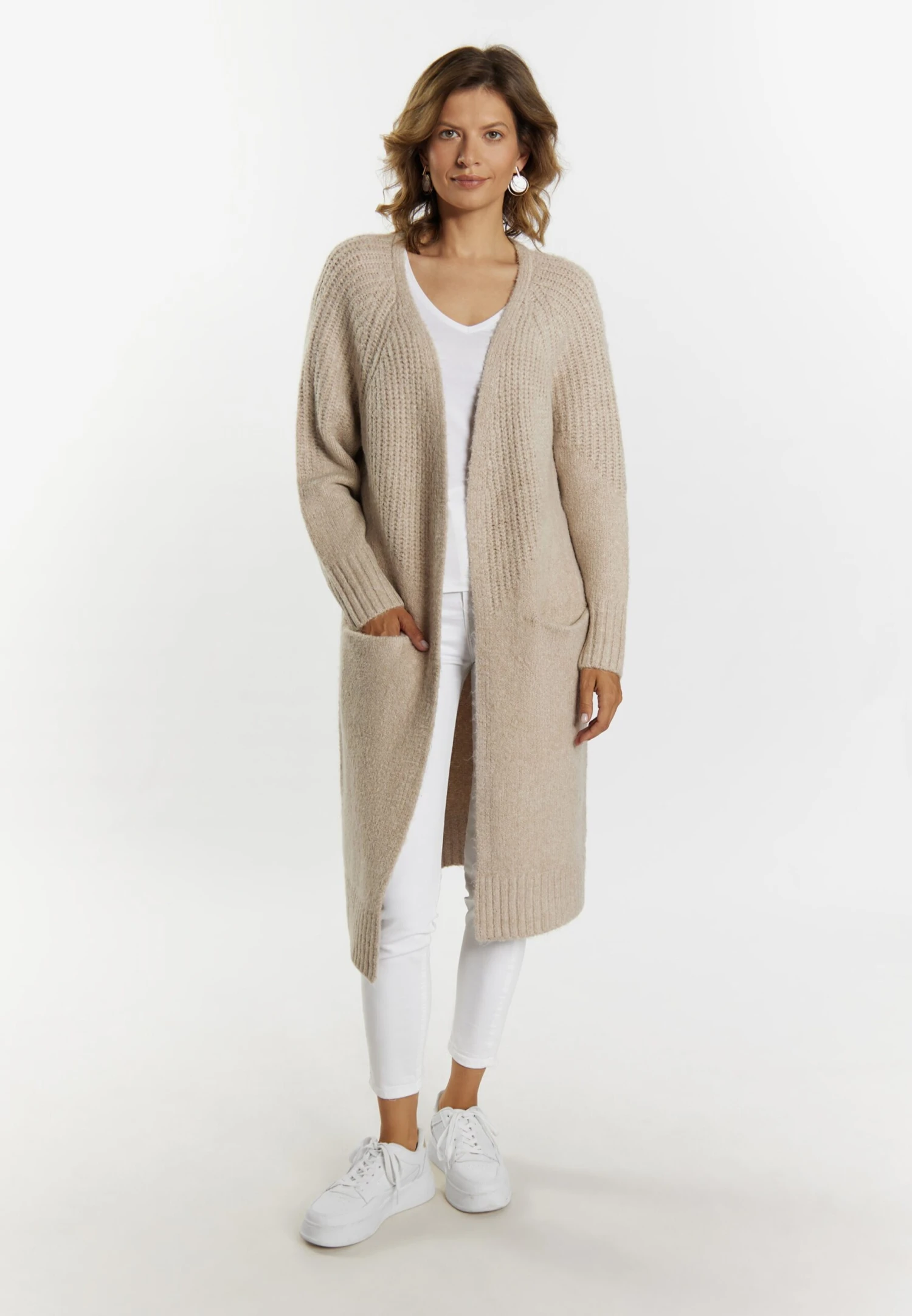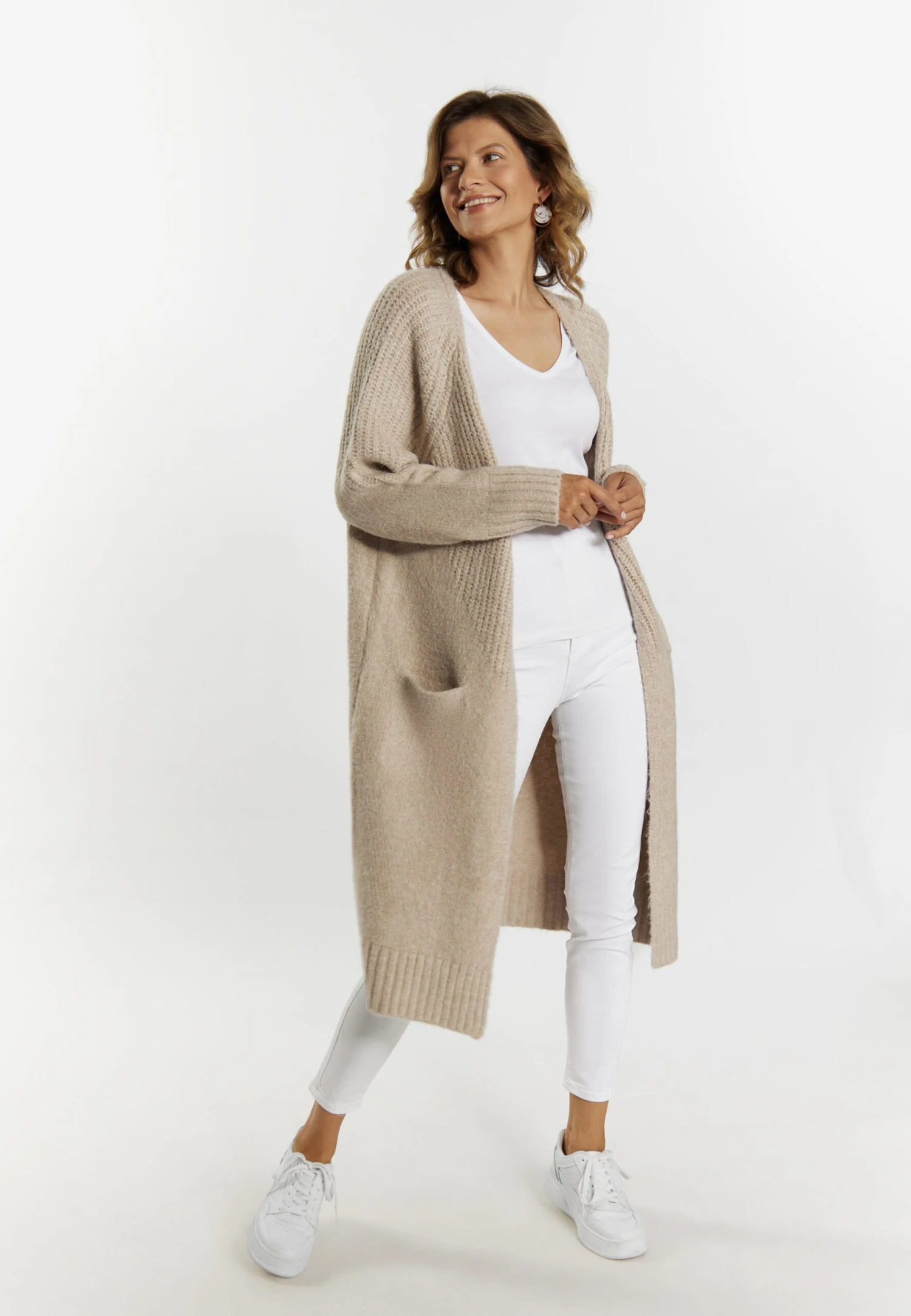 Lange Vesten Gebreide Mantel Dames Lichtbeige